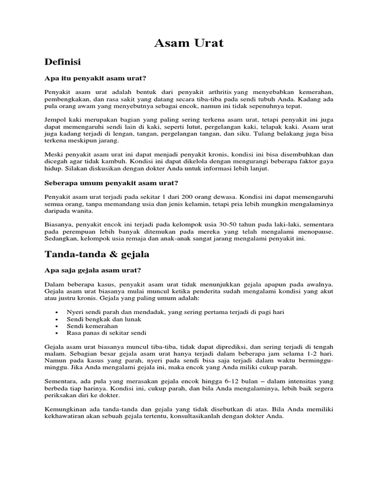 Penyebab Penyakit Asam Urat Dan Tips Mencegahnya Honestdocs from www.honestdocs.id Check spelling or type a new query. We did not find results for: Maybe you would like to learn more about one of these?